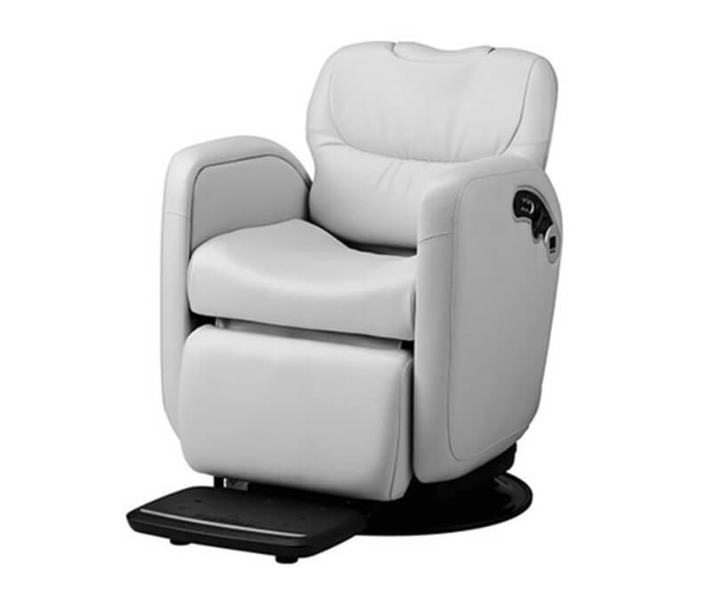 Конструкція крісла включає моторне регулювання, підігрів та ергономічні форми, що створюють атмосферу комфорту і релаксу, даючи відчуття, ніби ви знаходитеся в затишному та стилізованому просторі. У процесі процедур комфорт клієнта завжди на першому місці.
