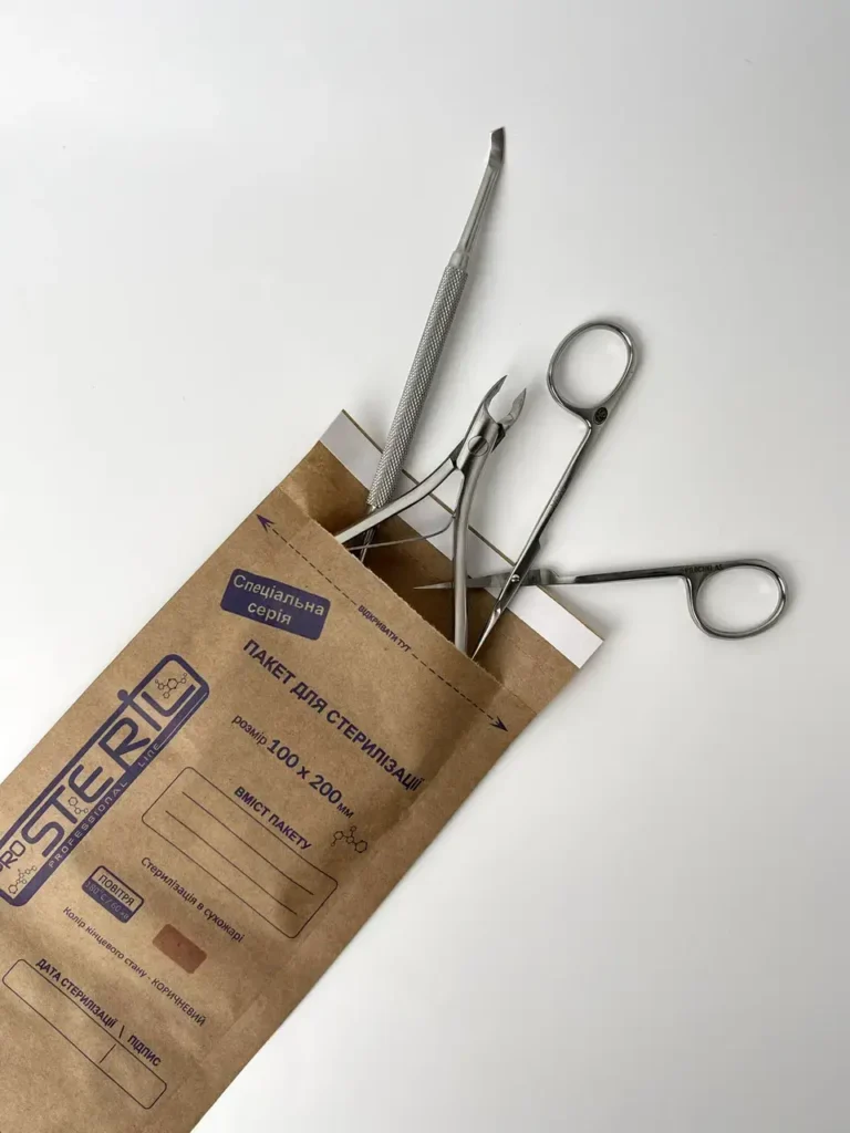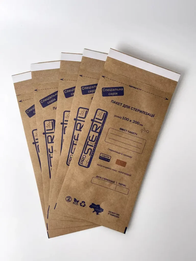 - Після цього вони поміщаються у крафт-пакети, готові до стерилізації.